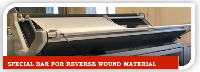 - Audinio išvyniojimas ir suvyniojimas su audinio krašto lygiavimu